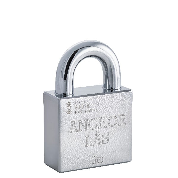 A powerful and weather-protected CEN Grade 5 padlock suitable for locking containers, warehouses, gates and the like. The padlock is included ANCHOR disc lock cylinder and 2 keys. The cylinder is protected in the padlock by a 4.5mm thick hardened free-rotating washer. The padlock is available in master key systems and equal locking groups. The lock is delivered in a weather-protected design with sealing O-rings in the shackle holes and a weather protection cap for the cylinder. As an option, the lock is available with a loose shackle to facilitate locking in hard-to-reach spaces.